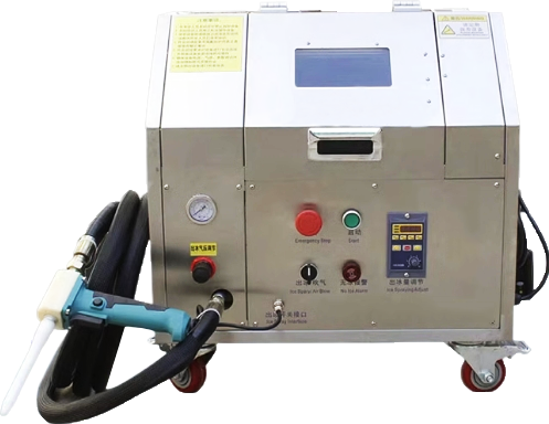 首先,干冰清洗机将液态二氧化碳通过特定的工艺过程转化为固态干冰颗粒。这些干冰颗粒被储存在机器内部,并准备用于清洗工作。